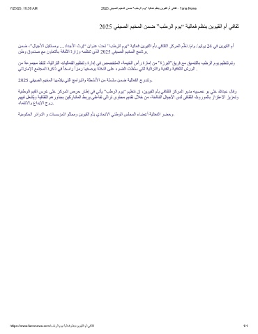 7/25/25, 10:30 AM 2025 ﻲﻔﯾﺻﻟا مﯾﺧﻣﻟا نﻣﺿ "بطرﻟا موﯾ" ﺔﯾﻟﺎﻌﻓ مظﻧﯾ نﯾوﯾﻘﻟا مأ ﻲﻓﺎﻘﺛ - Fana News
