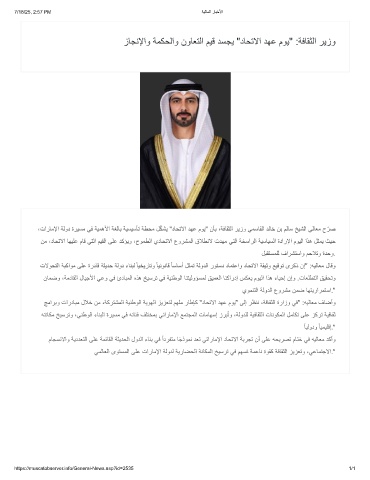 ،تارﺎﻣﻹا ﺔﻟود ةرﯾﺳﻣ ﻲﻓ ﺔﯾﻣھﻷا ﺔﻐﻟﺎﺑ ﺔﯾﺳﯾﺳﺄﺗ ﺔطﺣﻣ لّﻛﺷﯾ "دﺎﺣﺗﻻا دﮭﻋ موﯾ" نﺄﺑ ،ﺔﻓﺎﻘﺛﻟا رﯾزو ﻲﻣﺳﺎﻘﻟا دﻟﺎﺧ نﺑ مﻟﺎﺳ ﺦﯾﺷﻟا ﻲﻟﺎﻌﻣ ح ّ رﺻ
