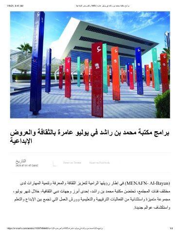 https://menafn.com/arabic/1109749448/ﺔﯾﻋادﺑﻹا-ضورﻌﻟاو-ﺔﻓﺎﻘﺛﻟﺎﺑ-ةرﻣﺎﻋ-وﯾﻟوﯾ-ﻲﻓ-دﺷار-نﺑ-دﻣﺣﻣ-ﺔﺑﺗﻛﻣ-ﺞﻣارﺑ 1/2