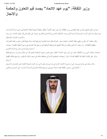 ،تارﺎﻣﻹا ﺔﻟود ةرﯾﺳﻣ ﻲﻓ ﺔﯾﻣھﻷا ﺔﻐﻟﺎﺑ ﺔﯾﺳﯾﺳﺄﺗ ﺔطﺣﻣ لّﻛﺷﯾ "دﺎﺣﺗﻻا دﮭﻋ موﯾ" نﺄﺑ ،ﺔﻓﺎﻘﺛﻟا رﯾزو ﻲﻣﺳﺎﻘﻟا دﻟﺎﺧ نﺑ مﻟﺎﺳ ﺦﯾﺷﻟا ﻲﻟﺎﻌﻣ ح ّ رﺻ