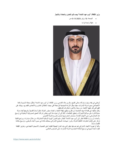 زاجنلإاو ةمكحلاو نواعتلا ميق دسجي "داحتلاا دهع موي" :ةفاقثلا ريزو