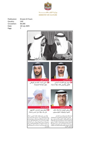Publication: Emarat Al Youm Country: UAE Circulation: 80,000 Date: 18 July 2025 Page: 7