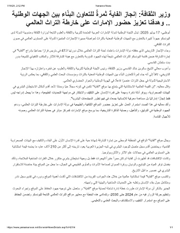 ىدﻟ ﺔﻟودﻟا ﺔﯾﺑودﻧﻣو ﺔﻓﺎﻘﺛﻟا ةرازوﻟ ﺔﻌﺑﺎﺗﻟا موﻠﻌﻟاو ﺔﻓﺎﻘﺛﻟاو ﺔﯾﺑرﺗﻠﻟ ةدﺣﺗﻣﻟا ﺔﯾﺑرﻌﻟا تارﺎﻣﻹا ﺔﻟودﻟ ﺔﯾﻧطوﻟا ﺔﻧﺟﻠﻟا لذﺑﺗ :2025 وﯾﻟوﯾ 17 ،ﻲﺑظوﺑأ