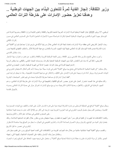 ىدﻟ ﺔﻟودﻟا ﺔﯾﺑودﻧﻣو ﺔﻓﺎﻘﺛﻟا ةرازوﻟ ﺔﻌﺑﺎﺗﻟا موﻠﻌﻟاو ﺔﻓﺎﻘﺛﻟاو ﺔﯾﺑرﺗﻠﻟ ةدﺣﺗﻣﻟا ﺔﯾﺑرﻌﻟا تارﺎﻣﻹا ﺔﻟودﻟ ﺔﯾﻧطوﻟا ﺔﻧﺟﻠﻟا لذﺑﺗ :2025 وﯾﻟوﯾ 17 ،ﻲﺑظوﺑأ