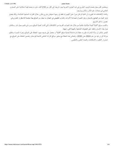 ىوﺗﺳﻣﻟا ﻰﻠﻋ ﺔﯾﺋﺎﻧﺛﺗﺳا ﺔﻣﯾﻗ ﮫﺣﻧﻣﯾ ﺎﻣ ،مﺎﻋ فﻻآ 210 نﻣ رﺛﻛأ ﻰﻟإ ﮫﺧﯾرﺎﺗ دوﻌﯾ ﺔﯾﺑرﻌﻟا ةرﯾزﺟﻟا ﮫﺑﺷ ﻲﻓ يرﺷﺑﻟا دوﺟوﻠﻟ لﺻﺗﻣ لﺟﺳ مدﻗأ نﺿﺗﺣﯾو