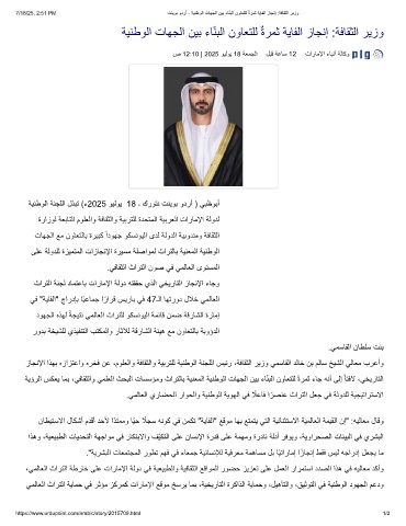 ،ﻲﻣﻟﺎﻌﻟا ثارﺗﻟا ﺔطرﺎﺧ ﻰﻠﻋ تارﺎﻣﻹا ﺔﻟود ﻲﻓ ﺔﯾﻌﯾﺑطﻟاو ﺔﯾﻓﺎﻘﺛﻟا ﻊﻗاوﻣﻟا روﺿﺣ زﯾزﻌﺗ ﻰﻠﻋ لﻣﻌﻟا رارﻣﺗﺳا ددﺻﻟا اذھ ﻲﻓ ﮫﯾﻟﺎﻌﻣ دﻛأو