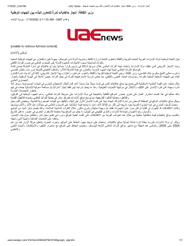 7/18/25, 2:49 PM UAE News - ﺔﯾﻧطوﻟا تﺎﮭﺟﻟا نﯾﺑ ءﺎّﻧﺑﻟا نوﺎﻌﺗﻠﻟ ٌةرﻣﺛ «ﺔﯾﺎﻔﻟا» زﺎﺟﻧإ :ﺔﻓﺎﻘﺛﻟا رﯾزو - تارﺎﻣﻹا رﺎﺑﺧأ