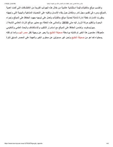 ـﻟ ﺔﻌﺑﺎﺗﻟا ﻲﻣﻟﺎﻌﻟا ثارﺗﻟا ﻊﻗاوﻣ رﯾﯾﺎﻌﻣ ﻊﻣ ﺔطﺧﻟا هذھ ﻰﺷﺎﻣﺗﺗو ،2030 ﻰﺗﺣ ﮫﯾﻓ راوزﻟا ﺔﻛرﺣ مﯾظﻧﺗو ثوﺣﺑﻟا