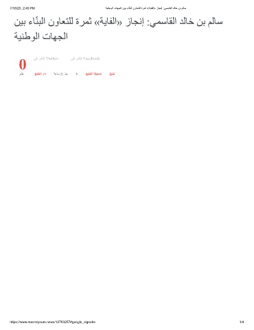 7/18/25, 2:49 PM ﺔﯾﻧطوﻟا تﺎﮭﺟﻟا نﯾﺑ ءﺎّﻧﺑﻟا نوﺎﻌﺗﻠﻟ ةرﻣﺛ «ﺔﯾﺎﻔﻟا» زﺎﺟﻧإ :ﻲﻣﺳﺎﻘﻟا دﻟﺎﺧ نﺑ مﻟﺎﺳ
