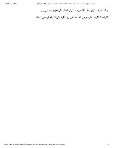 .....رﻮﻀﺣ ﺰﯾﺰﻌﺗ ﻰﻠﻋ ﻞﻤﻌﻟا راﺮﻤﺘﺳا ،ﻲﻤﺳﺎﻘﻟا ﺪﻟﺎﺧ ﻦﺑ ﻢﻟﺎﺳ ﺦﯿﺸﻟا ﺪﻛأو