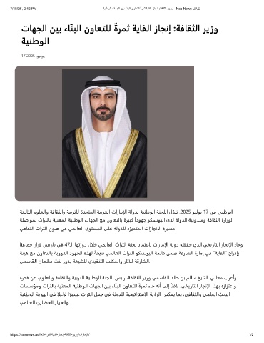 7/18/25, 2:42 PM ﺔﯾﻧطوﻟا تﺎﮭﺟﻟا نﯾﺑ ءﺎّﻧﺑﻟا نوﺎﻌﺗﻠﻟ ٌةرﻣﺛ ﺔﯾﺎﻔﻟا زﺎﺟﻧإ :ﺔﻓﺎﻘﺛﻟا رﯾزو - Nas News UAE