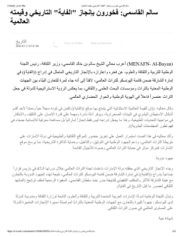نوﺎﻌﺘﻟﺎﺑ ﺔﺑوؤﺪﻟا دﻮﮭﺠﻟا هﺬﮭﻟ ﺔﺠﯿﺘﻧ ،ﻲﻤﻟﺎﻌﻟا ثاﺮﺘﻠﻟ ﻮﻜﺴﻧﻮﯿﻟا ﺔﻤﺋﺎﻗ ﻦﻤﺿ ﺔﻗرﺎﺸﻟا ةرﺎﻣإ ﻲﻓ ((ﺔﯾﺎﻔﻟا)) جاردﺈﺑ ﺎﯿﻋﺎﻤﺟ