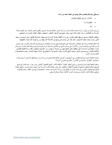 ةلوطب ميظنتو ،سيرلا مساج دمحمل ”يبأ ةسردم“ باتك قلاطإ بناج ىلإ ،نيعفايلاو لافطلأل ةيميلعتو ةيهيفرت تايلاعف ةبتكملل يفيصلا