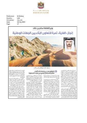 Publication: Al Khaleej Country: UAE Circulation: 121,141 Date: 18 July 2025 Page: 27