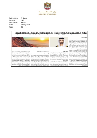 Publication: Al Bayan Country: UAE Circulation: 88,000 Date: 18 July 2025 Page: 31