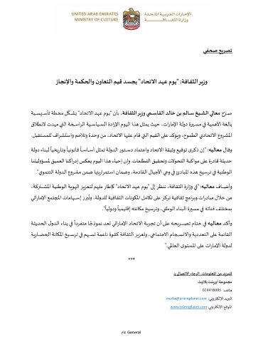 زاجنلإاو ةمكحلاو نواعتلا ميق دسجي " داحتلاا دهع موي " :ةفاقثلا ريزو