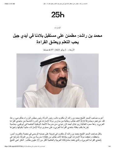 7/8/25, 9:37 AM 25 – ةءارﻘﻟا ﻖﺷﻌﯾو مﻠﻌﺗﻟا بﺣﯾ لﯾﺟ يدﯾأ ﻲﻓ ﺎﻧدﻼﺑ لﺑﻘﺗﺳﻣ ﻰﻠﻋ نﺋﻣطﻣ :دﺷار نﺑ دﻣﺣﻣH