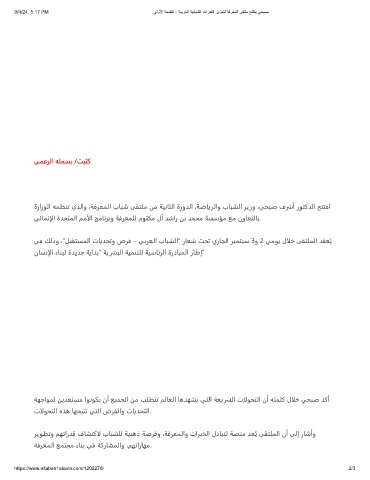 9/4/24, 5:17 PM ﻲﻟوﻷا ﺔﻌﺑطﻟا - ﺔﯾﺑرﻌﻟا ﺔﯾﺑﺎﺑﺷﻟا تاردﻘﻟا زﯾزﻌﺗﻟ ﺔﻓرﻌﻣﻟا ﻰﻘﺗﻠﻣ ﺢﺗﺗﻔﯾ ﻲﺣﺑﺻ