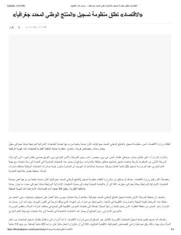 5/22/25, 3:16 PM «ﺞﯾﻠﺧﻟا تﺎﻋوﺿوﻣ – «ً ﺎﯾﻓارﻐﺟ ددﺣﻣﻟا ﻲﻧطوﻟا ﺞﺗﻧﻣﻟا» لﯾﺟﺳﺗ ﺔﻣوظﻧﻣ ﻖﻠطﺗ «دﺎﺻﺗﻗﻻا