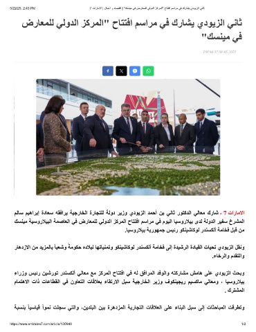 5/22/25, 2:43 PM 7 تارﺎﻣﻻا | لﺎﻣﻋا و دﺎﺻﺗﻗا | "كﺳﻧﯾﻣ ﻲﻓ ضرﺎﻌﻣﻠﻟ ﻲﻟودﻟا زﻛرﻣﻟا" حﺎﺗﺗﻓا مﺳارﻣ ﻲﻓ كرﺎﺷﯾ يدوﯾزﻟا ﻲﻧﺎﺛ