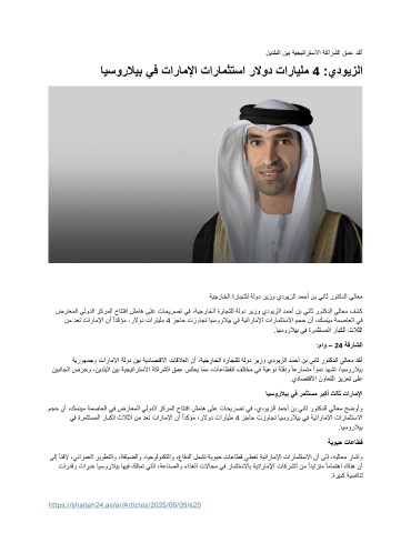 ةيروهمجو تاراملإا ةلود نيب ةيداصتقلاا تاقلاعلا نأ ،ةيجراخلا ةراجتلل ةلود ريزو يدويزلا دمحأ نب يناث روتكدلا يلاعم دكأ