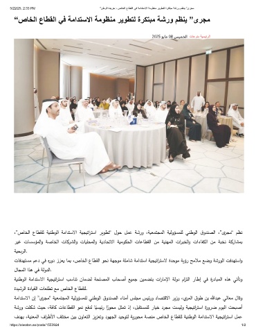 ،”صﺎخﻟا عﺎطﻘﻠﻟ ﺔينطوﻟا ﺔﻣادتﺳﻻا ﺔيجيﺗارتﺳا ريوطﺗ“ لوﺣ ﻞمﻋ ﺔﺷرو ،ﺔيعمتجمﻟا ﺔيﻟوؤسمﻠﻟ ﻲنطوﻟا قودنصﻟا ،”ى رجﻣ“ مظﻧ