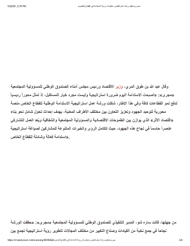 ﺔﯾﻌﻣﺗﺟﻣﻟا ﺔﯾﻟوؤﺳﻣﻠﻟ ﻲﻧطوﻟا قودﻧﺻﻟا ءﺎﻧﻣأ سﻠﺟﻣ سﯾﺋرو دﺎﺻﺗﻗﻻا رﯾزو ،يرﻣﻟا قوط نﺑ ﷲ دﺑﻋ لﺎﻗو
