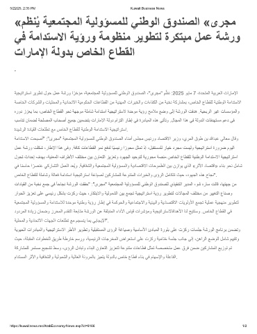 ﺔﯾﺟﯾﺗارﺗﺳا رﯾوطﺗ لوﺣ لﻣﻋ ﺔﺷرو ا ً رﺧؤﻣ ،ﺔﯾﻌﻣﺗﺟﻣﻟا ﺔﯾﻟوؤﺳﻣﻠﻟ ﻲﻧطوﻟا قودﻧﺻﻟا ،"ىرﺟﻣ" مظﻧ :2025 وﯾﺎﻣ 7 ،ةدﺣﺗﻣﻟا ﺔﯾﺑرﻌﻟا تارﺎﻣﻹا