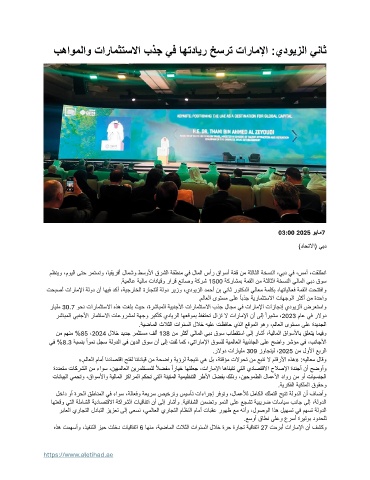رشابملا يبنجلأا رامثتسلاا تاعورشمل ةهجو ربكأك يدايرلا اهعقومب ظفتحت لازت لا تاراملإا نأ ىلإ ًاريشم ، 2023 ماع يف رلاود