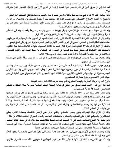 تارﺎﯿﻠﻣ 309 زوﺎﺠﺘﯿﻟ ،2025 ﻦﻣ لوﻷا ﻊﺑﺮﻟا ﻲﻓ %8.3 ﺔﺒﺴﻨﺑ ًاﻮﻤﻧ ﻞﺠﺳ ﺔﻟوﺪﻟا ﻲﻓ ﻦﯾﺪﻟا قﻮﺳ نأ ﻰﻟإ ﺖﻔﻟ ﺎﻤﻛ