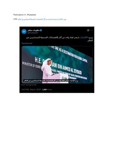 Publication: X – Mubasher Link: ملاعلا يف نيرمثتسملل ةقيدصلا تاداصتقلاا رثكأ نم دحاو ءانبل ىعست تاراملإا# :ريزو