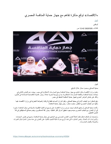 يرصملا ةسفانملا ةيامح زاهج عم مهافت ةركذم عقوت »داصتقلاا «