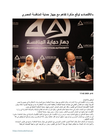 رصم ةيروهمج يف ةيراكتحلاا تاسرامملا عنمو ةسفانملا ةيامح زاهج عم مهافت ةركذم ،تاراملإا ةلود يف داصتقلاا ةرازو تعقو
