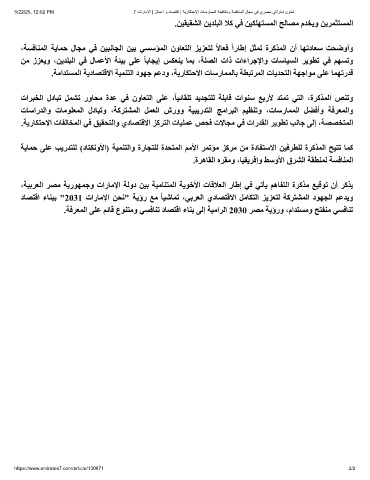 5/22/25, 12:02 PM 7 تارﺎﻣﻻا | لﺎﻣﻋا و دﺎﺻﺗﻗا | ﺔﯾرﺎﻛﺗﺣﻻا تﺎﺳرﺎﻣﻣﻟا ﺔﺣﻓﺎﻛﻣو ﺔﺳﻓﺎﻧﻣﻟا لﺎﺟﻣ ﻲﻓ يرﺻﻣ ﻲﺗارﺎﻣإ نوﺎﻌﺗ
