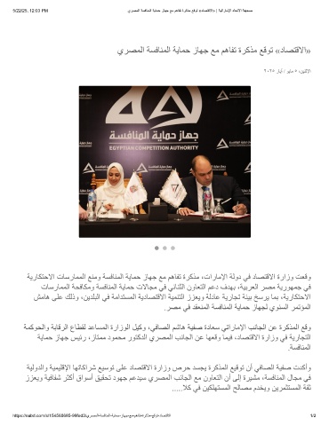 5/22/25, 12:03 PM يرﺻﻣﻟا ﺔﺳﻓﺎﻧﻣﻟا ﺔﯾﺎﻣﺣ زﺎﮭﺟ ﻊﻣ مھﺎﻔﺗ ةرﻛذﻣ ﻊﻗوﺗ «دﺎﺻﺗﻗﻻا» | ﺔﯾﺗارﺎﻣﻹا دﺎﺣﺗﻻا ﺔﻔﯾﺣﺻ