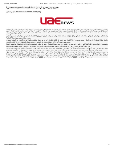 5/22/25, 12:03 PM UAE News - ﺔﯾرﺎﻛﺗﺣﻻا تﺎﺳرﺎﻣﻣﻟا ﺔﺣﻓﺎﻛﻣو ﺔﺳﻓﺎﻧﻣﻟا لﺎﺟﻣ ﻲﻓ يرﺻﻣ ﻲﺗارﺎﻣإ نوﺎﻌﺗ - تارﺎﻣﻹا رﺎﺑﺧأ