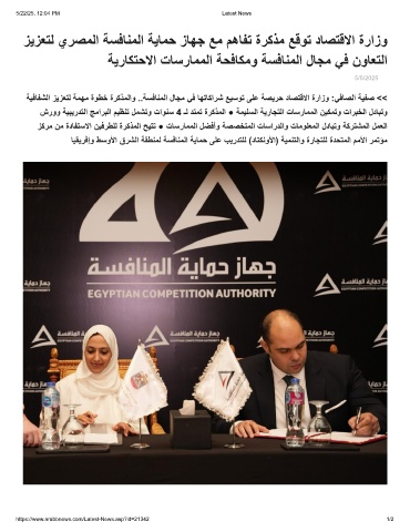 زﯾزﻌﺗﻟ يرﺻﻣﻟا ﺔﺳﻓﺎﻧﻣﻟا ﺔﯾﺎﻣﺣ زﺎﮭﺟ ﻊﻣ مھﺎﻔﺗ ةرﻛذﻣ ﻊﻗوﺗ دﺎﺻﺗﻗﻻا ةرازو