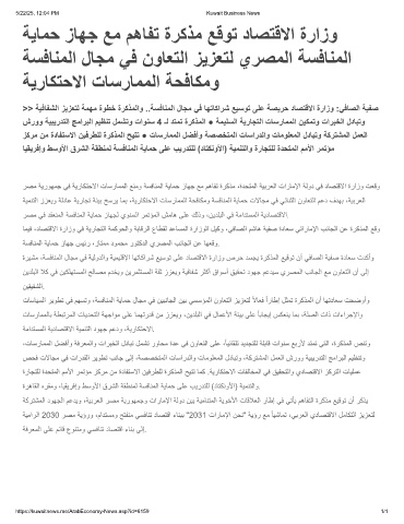رﺻﻣ ﺔﯾروﮭﻣﺟ ﻲﻓ ﺔﯾرﺎﻛﺗﺣﻻا تﺎﺳرﺎﻣﻣﻟا ﻊﻧﻣو ﺔﺳﻓﺎﻧﻣﻟا ﺔﯾﺎﻣﺣ زﺎﮭﺟ ﻊﻣ مھﺎﻔﺗ ةرﻛذﻣ ،ةدﺣﺗﻣﻟا ﺔﯾﺑرﻌﻟا تارﺎﻣﻹا ﺔﻟود ﻲﻓ دﺎﺻﺗﻗﻻا ةرازو تﻌﻗو