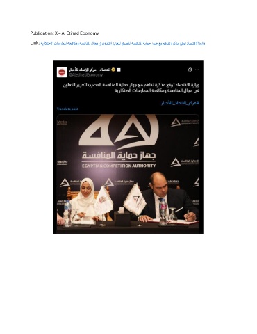 Publication: X – Al Etihad Economy Link: ةيراكتحلاا تاسراملما ةحفاكمو ةسفانلما لاجم يف نواعتلا زيزعتل يرصلما ةسفانلما ةيامح زاهج عم مهافت ةركذم عقوت داصتقلاا ةرازو