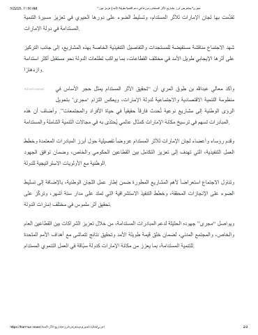 ﺔﯿﻤﻨﺘﻟا ةﺮﯿﺴﻣ ﺰﯾﺰﻌﺗ ﻲﻓ يﻮﯿﺤﻟا ﺎھرود ﻰﻠﻋ ءﻮﻀﻟا ﻂﯿﻠﺴﺗو ،ماﺪﺘﺴﻤﻟا ﺮﺛﻸﻟ تارﺎﻣﻹا نﺎﺠﻟ ﺎﮭﺑ ﺖﻣّﺪﻘﺗ