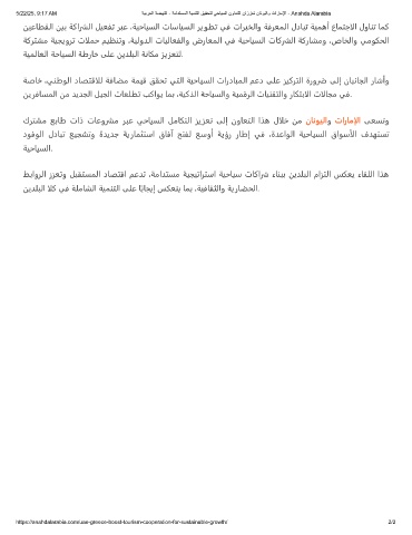 5/22/25, 9:17 AM ﺔﯾﺑرﻌﻟا ﺔﺿﮭﻧﻟا - ﺔﻣادﺗﺳﻣﻟا ﺔﯾﻣﻧﺗﻟا ﻖﯾﻘﺣﺗﻟ ﻲﺣﺎﯾﺳﻟا نوﺎﻌﺗﻟا ناززﻌﺗ نﺎﻧوﯾﻟاو تارﺎﻣﻹا - Anahda Alarabia