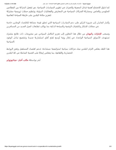 5/22/25, 9:18 AM رﺻﻣ رﺎﯾﺗ - ﺔﻣادﺗﺳﻣﻟا ﺔﯾﻣﻧﺗﻟا ﻖﯾﻘﺣﺗﻟ ﻲﺣﺎﯾﺳﻟا نوﺎﻌﺗﻟا ناززﻌﺗ نﺎﻧوﯾﻟاو تارﺎﻣﻹا - Tayar Egypt