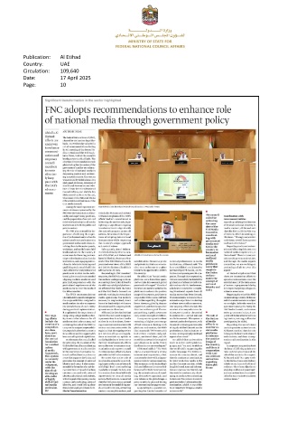 Publication: Al Etihad Country: UAE Circulation: 109,640 Date: 17 April 2025 Page: 10