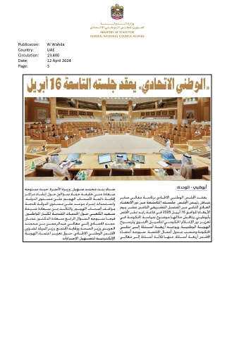 Publication: Al Wahda Country: UAE Circulation: 19,400 Date: 12 April 2024 Page: 3