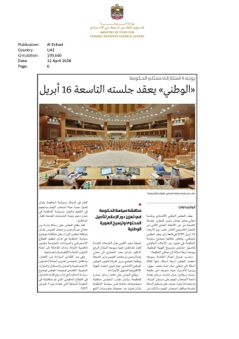 Publication: Al Etihad Country: UAE Circulation: 109,640 Date: 12 April 2024 Page: 6