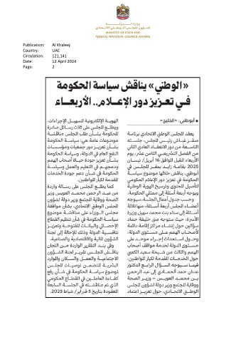 Publication: Al Khaleej Country: UAE Circulation: 121,141 Date: 12 April 2024 Page: 2