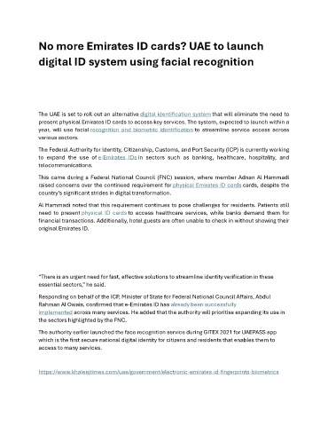 present physical Emirates ID cards to access key services. The system, expected to launch within a