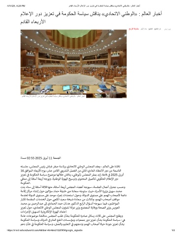 4/14/25, 4:24 PM مدﺎﻘﻟا ءﺎﻌﺑرﻷا مﻼﻋﻹا رود زﯾزﻌﺗ ﻲﻓ ﺔﻣوﻛﺣﻟا ﺔﺳﺎﯾﺳ شﻗﺎﻧﯾ «يدﺎﺣﺗﻻا ﻲﻧطوﻟا» : مﻟﺎﻌﻟا رﺎﺑﺧأ