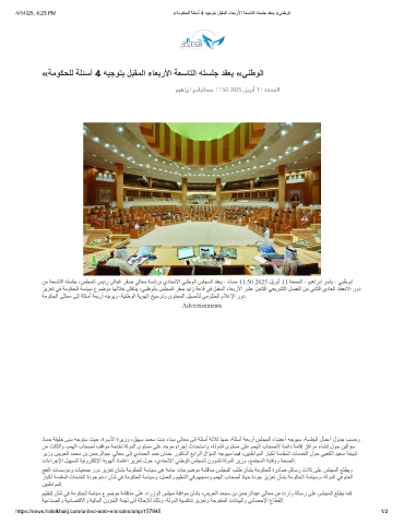 4/14/25, 4:23 PM «ﺔﻣوﻛﺣﻠﻟ ﺔﻠﺋﺳأ 4 ﮫﯾﺟوﺗﺑ لﺑﻘﻣﻟا ءﺎﻌﺑرﻷا ﺔﻌﺳﺎﺗﻟا ﮫﺗﺳﻠﺟ دﻘﻌﯾ «ﻲﻧطوﻟا