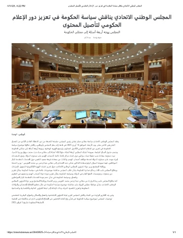 4/14/25, 4:22 PM ىوﺗﺣﻣﻟا لﯾﺻﺄﺗﻟ ﻲﻣوﻛﺣﻟا مﻼﻋﻹا رود زﯾزﻌﺗ ﻲﻓ ﺔﻣوﻛﺣﻟا ﺔﺳﺎﯾﺳ شﻗﺎﻧﯾ يدﺎﺣﺗﻻا ﻲﻧطوﻟا سﻠﺟﻣﻟا